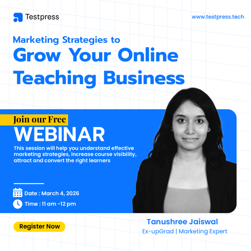 Testpress is a leading online learning platform trusted by creators, educators, and businesses. With Testpress, you can easily launch and sell your courses, workshops, and digital products without needing any tech expertise. Whether you want to offer video lessons, PDFs, quizzes, or subscription memberships, Testpress provides everything you need to build your own branded learning experience.